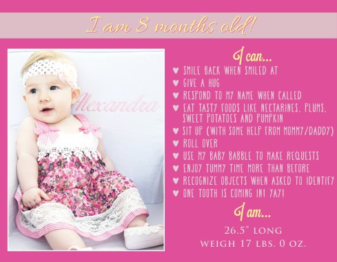 Alexandra 8 Month Announcement_2 Previous Next Published August 25, 2016 at 2700 × 2100 in Captured Moments Share this: Click to share on Facebook (Opens in new window) Facebook Click to share on X (Opens in new window) X Click to email a link to a friend (Opens in new window) Email Like Loading...